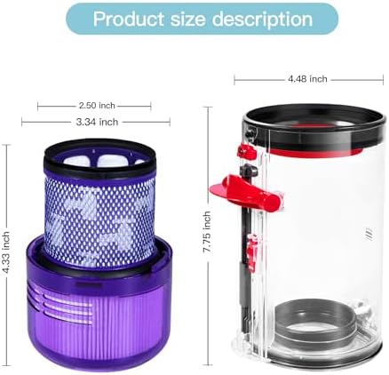 Our replacement dust bucket and filter are designed specifically for Dyson V11, V15, SV14, SV15, and SV22 vacuum cleaners. Check for the part numbers 969509-01 and 965440-01 for certainty. Before purchasing, ensure that your dust removal bucket has 9 rectangular dots for compatibility.